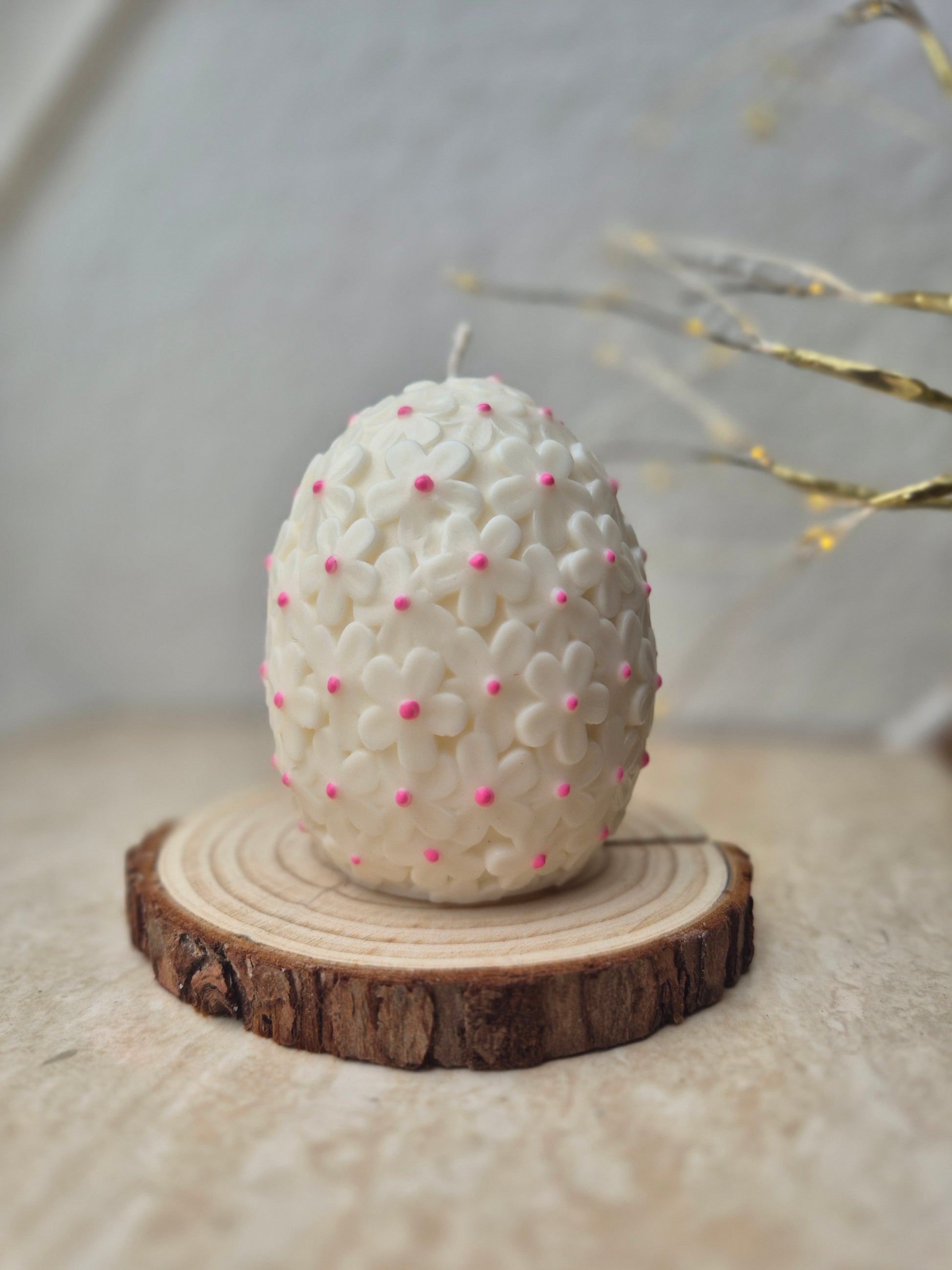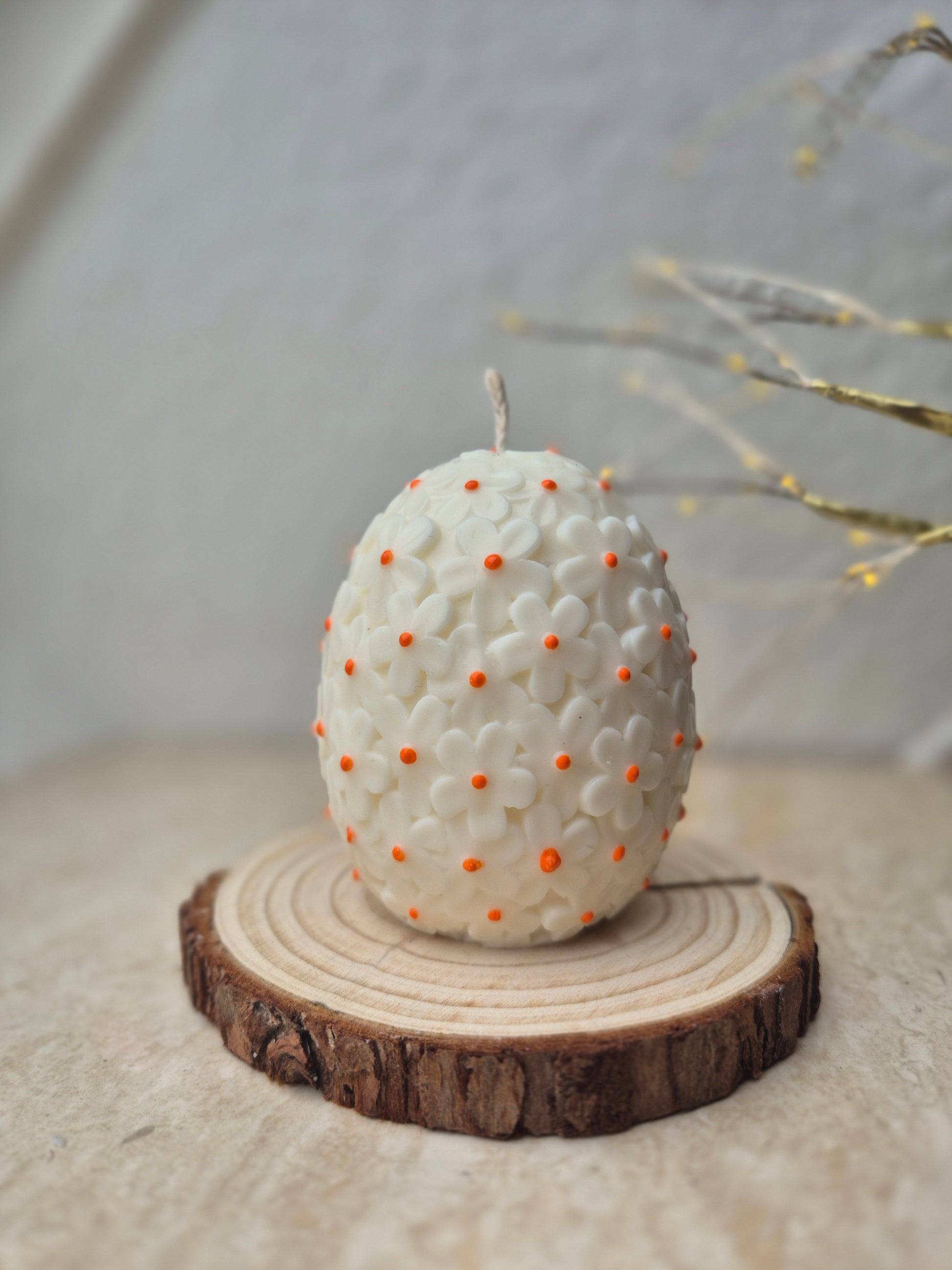 Verleih deinem Zuhause mit unserer handgefertigten Osterei-Kerze ein frühlingshaftes Ambiente. Das zarte Blumenmuster auf der Kerze macht Vorfreude auf die ersten warmen Tage und bringt eine verspielte Eleganz in jede Dekoration. Perfekt für Osterfeiern, festliche Anlässe oder als stilvolle Dekoidee.