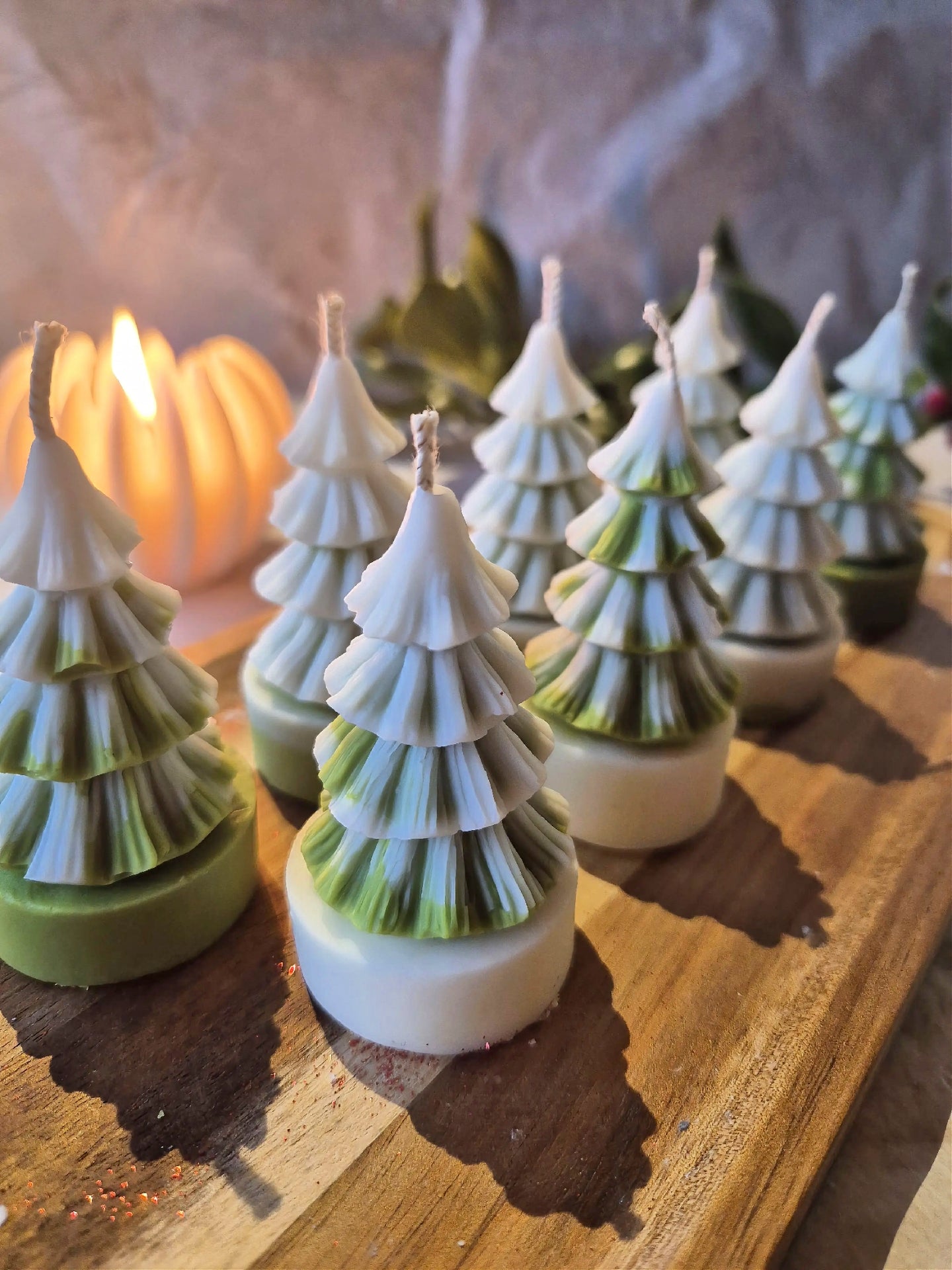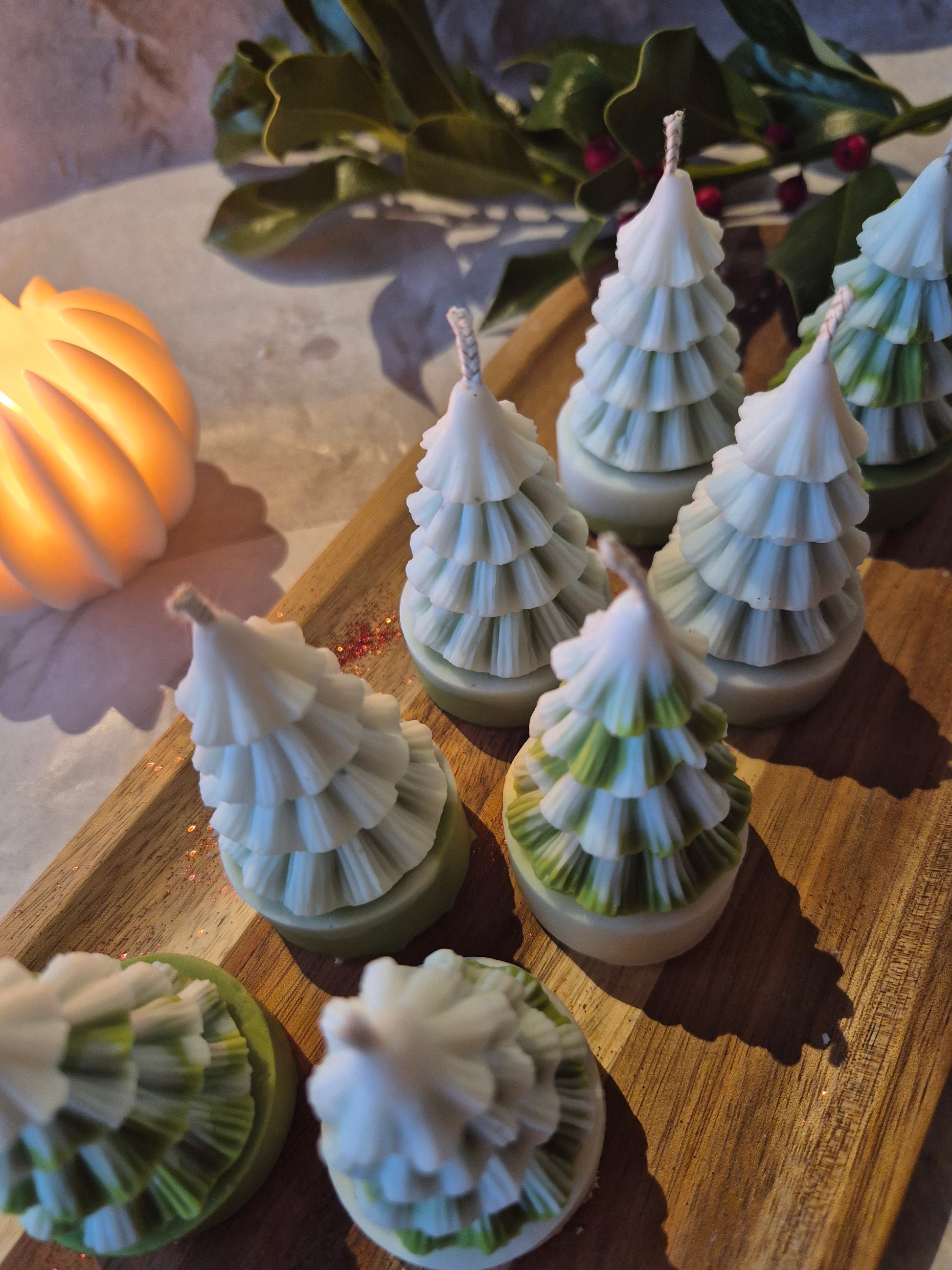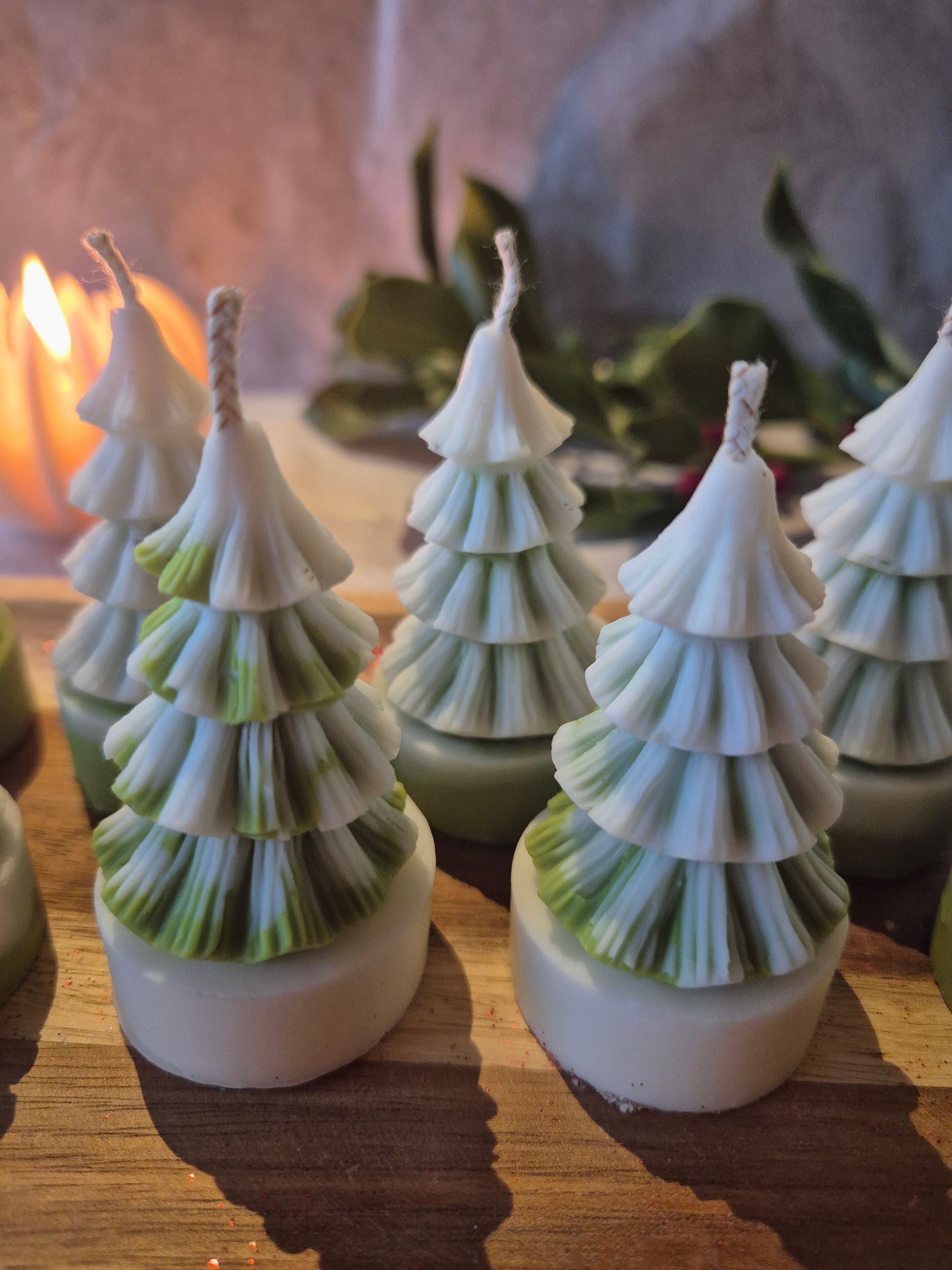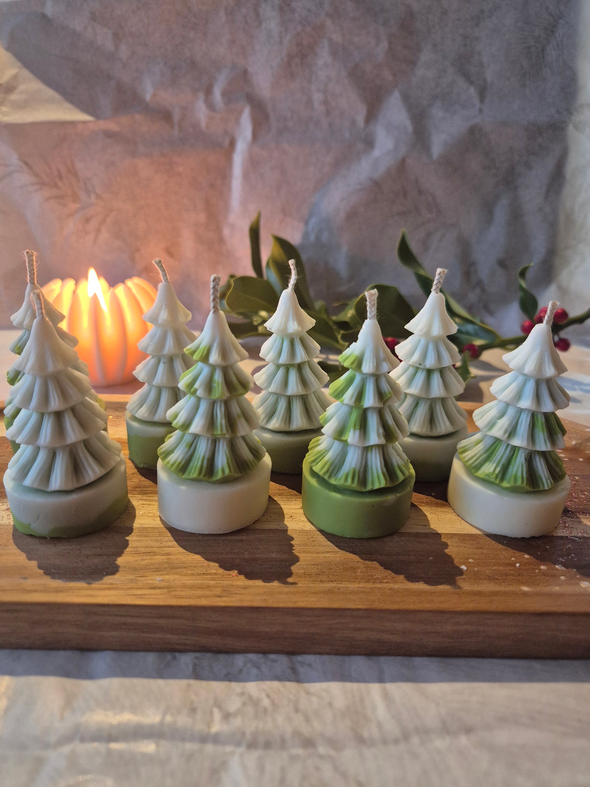 Du suchst eine kleine Kerze als Deko? Dann sind diese kleinen Schneebäume genau das Richtige!