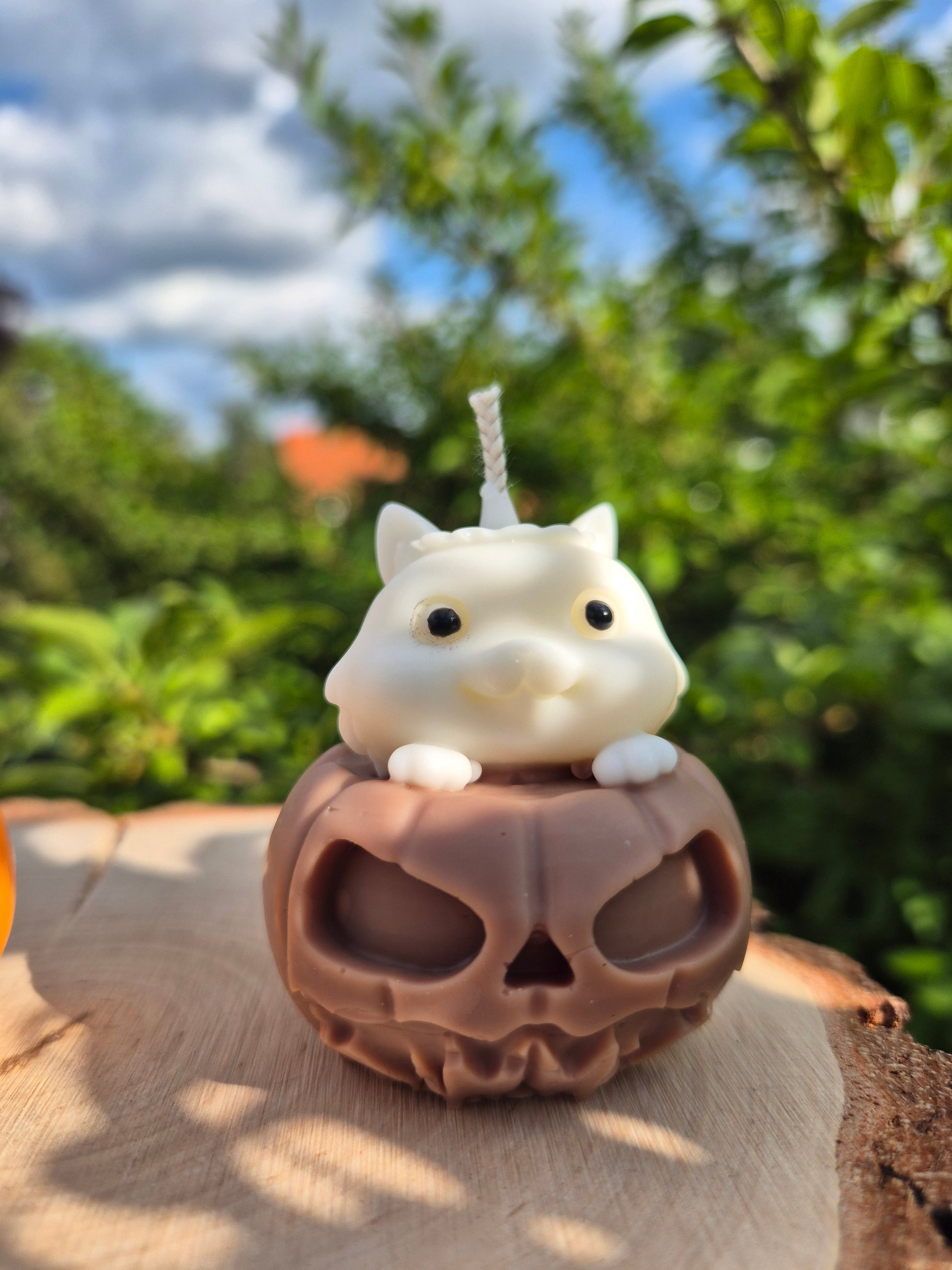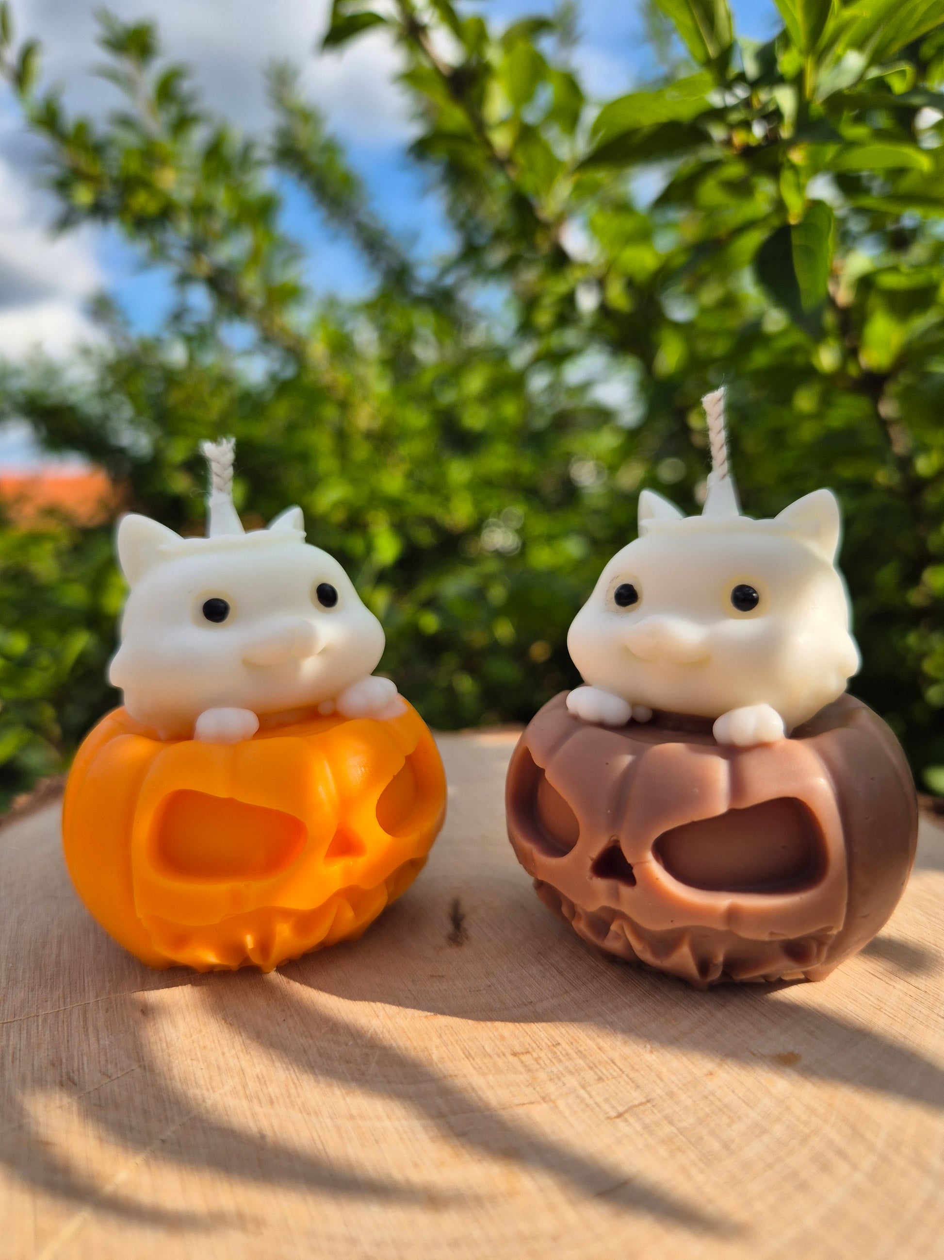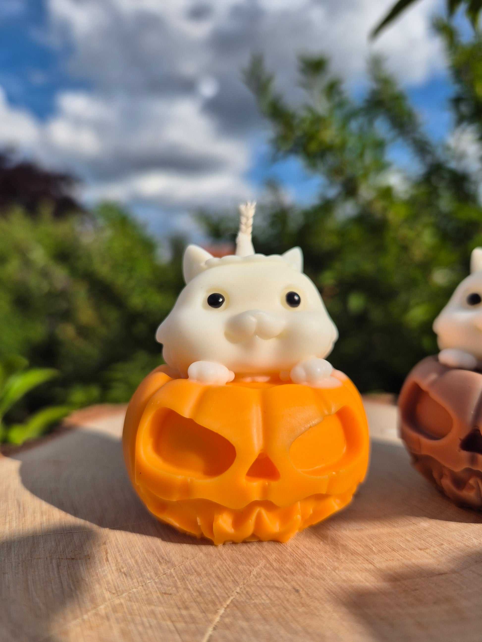 Diese süße Katze sitzt in einem Kürbis und wartet auf Dich! Sie brennt nicht lange, da sie wirklich klein ist, aber sie ist ein absoluter Blickfang oder auch super geeignet als Geschenk für deine Gäste auf der Halloweenparty!