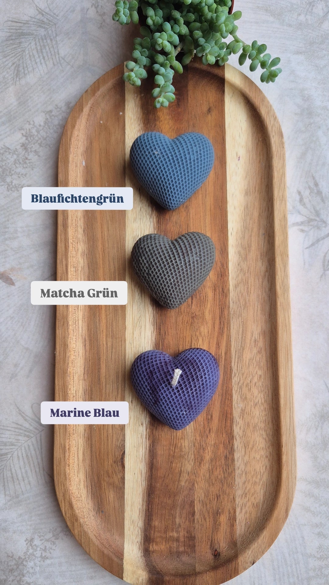 Die Farben können je nach Lichteinfall etwas heller oder dunkler erscheinen. Bitte beachte auch, dass jede Kerze ein Unikat ist und per Hand gegossen wird. Aus diesem Grund können auch kleine Unebenheiten und Unterschiede zum Foto vorhanden sein.